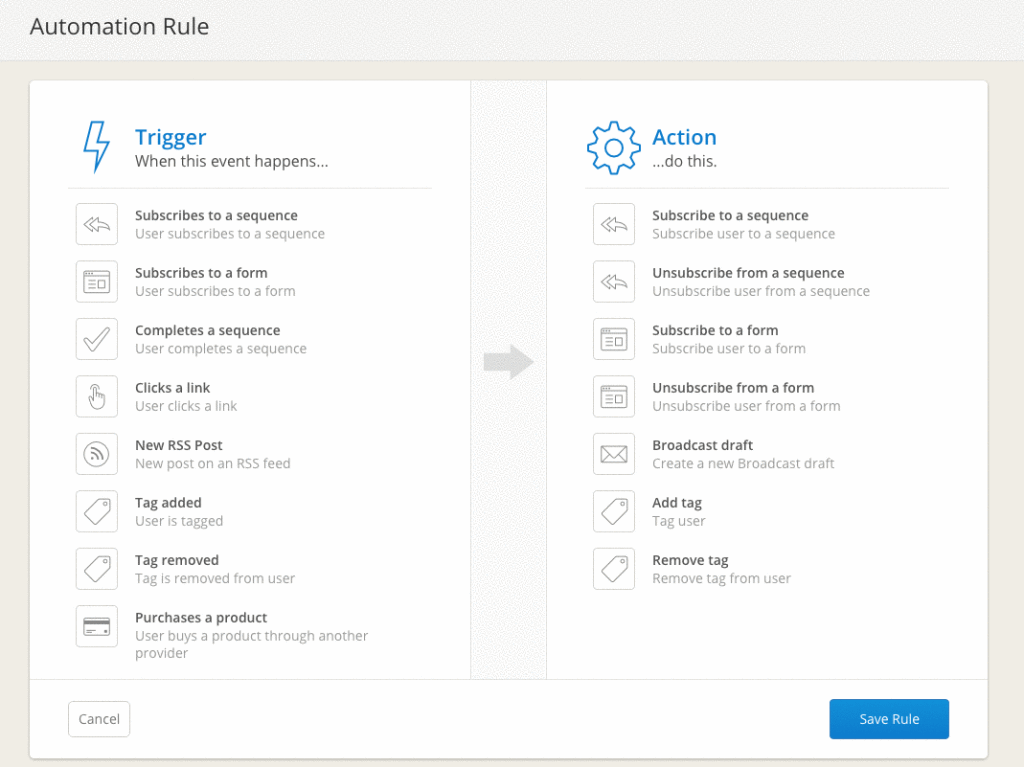 Here’s an example of automation triggers I use in ConvertKit (my ESP):