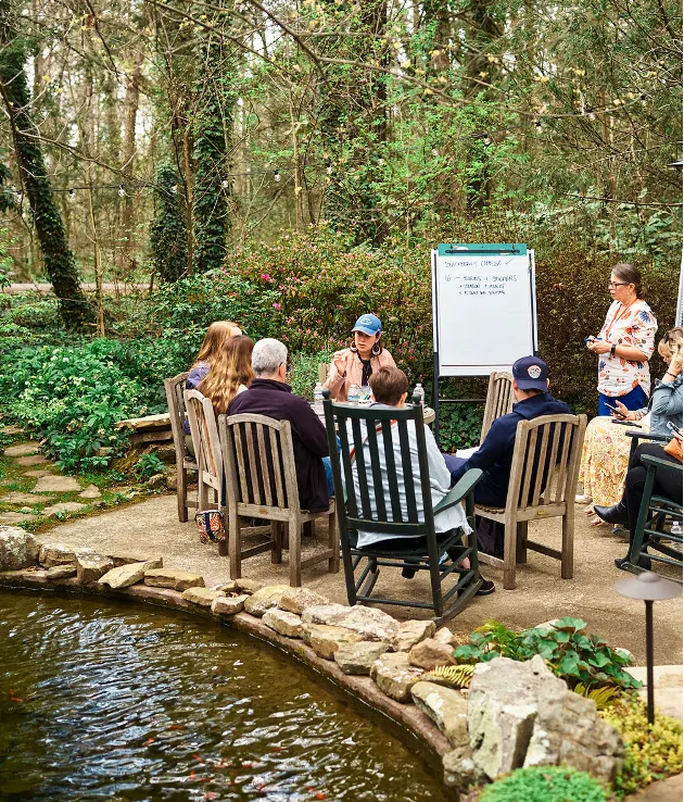 Yes, we will learn, we will build community, we will connect deeply. But we’ll also breathe fresh air and relax in a comfortable lodge surrounded by gardens, ponds, forests, and hiking trails. We’ll celebrate new business friendships with fine dining and fun surprises along the way.